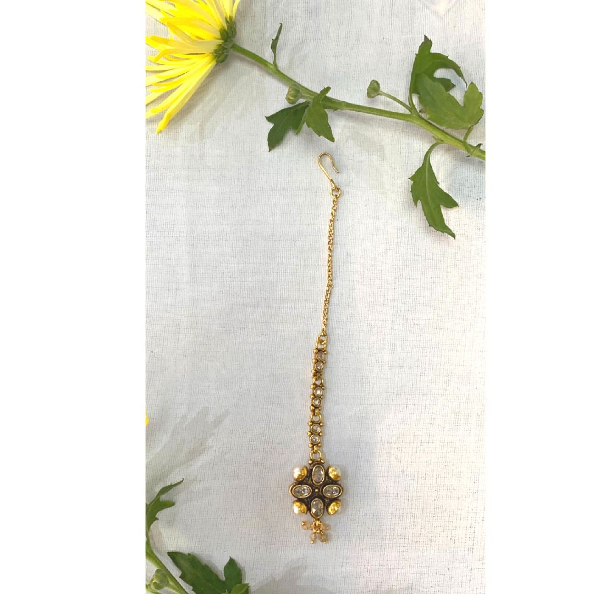 Joyas artificiales de diseñador (para la frente) | Artificial Antique Kundan and Stone work Maang Tikka