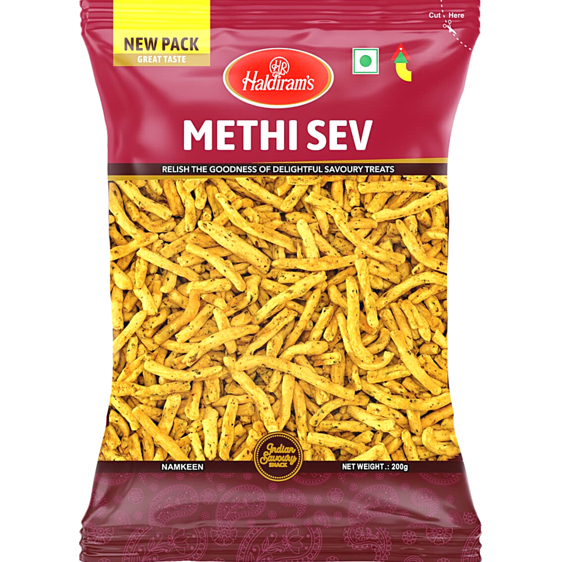 200gm Haldiram Methi Sev se elabora con harina de garbanzo, hojas de fenegreco, cacahuetes pimienta negra en polvo....Precio habitual €2.25 EURPrecio de oferta €2.25 EUR Precio habitualPrecio unitario por -