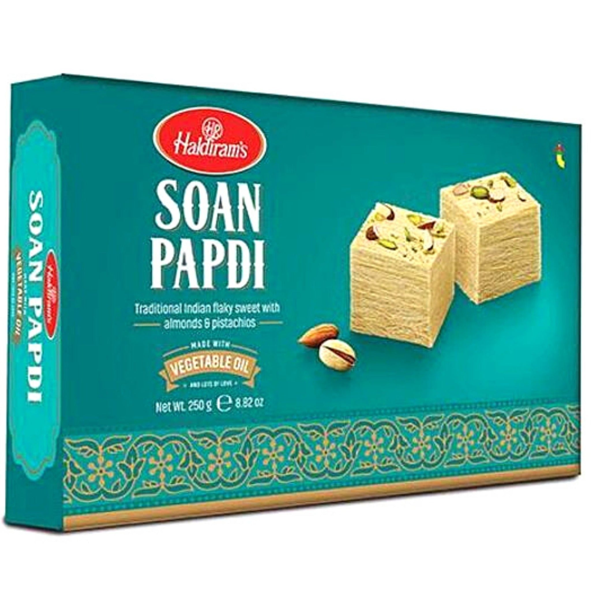 250g Soan papdi es un dulce indio popular. Sus principales ingredientes son azúcar, harina de garbanzo, harina, mantequilla...Precio habitual €4.50 EURPrecio de oferta €4.50 EUR Precio habitualPrecio unitario por -