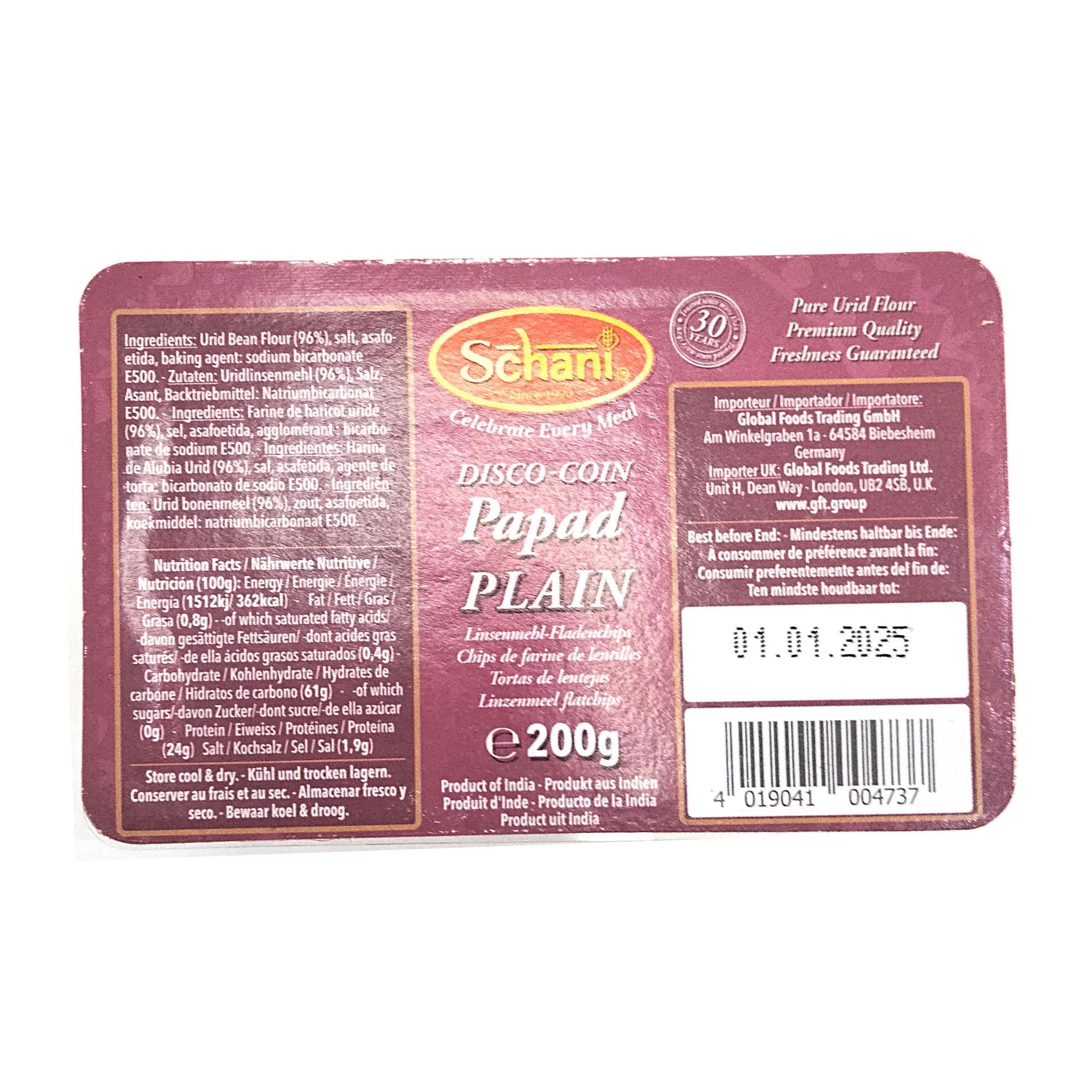 Small Papadum | Mini Plain Papad (Disco Coin) 200g Schani