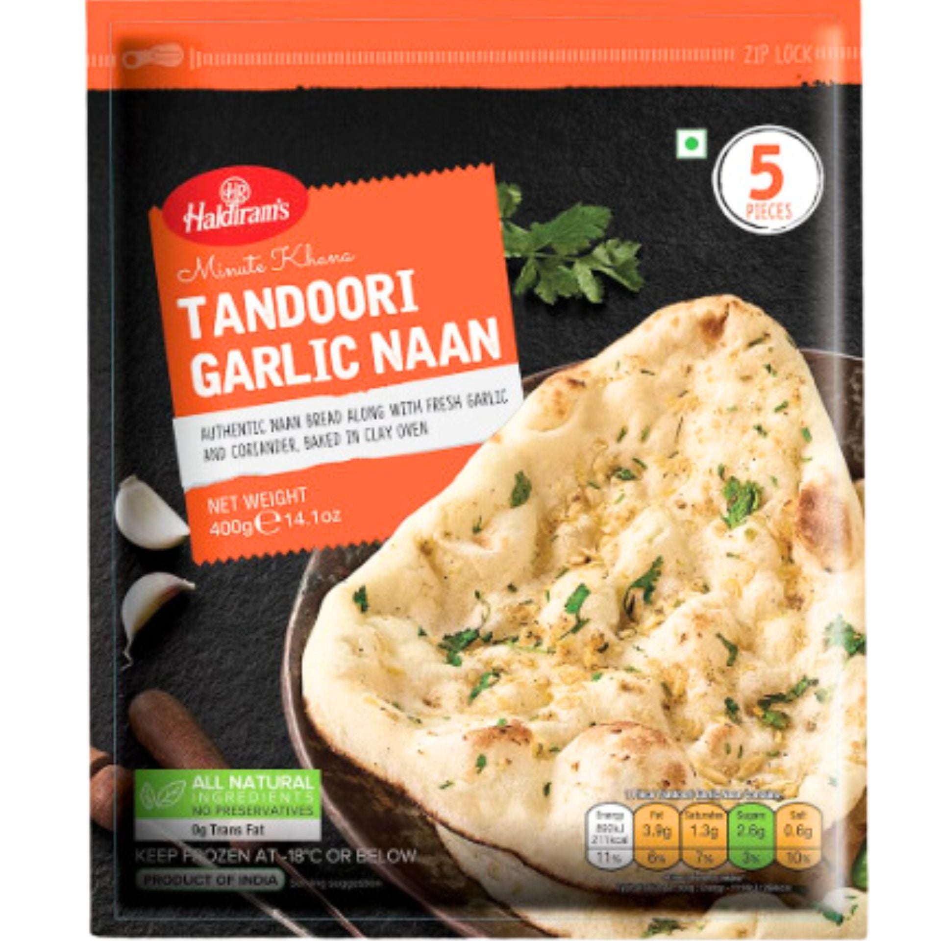 बेक्ड लहसुन नान ब्रेड | तंदूरी लहसुन नान 400 ग्राम/5 पीसी। हल्दीराम