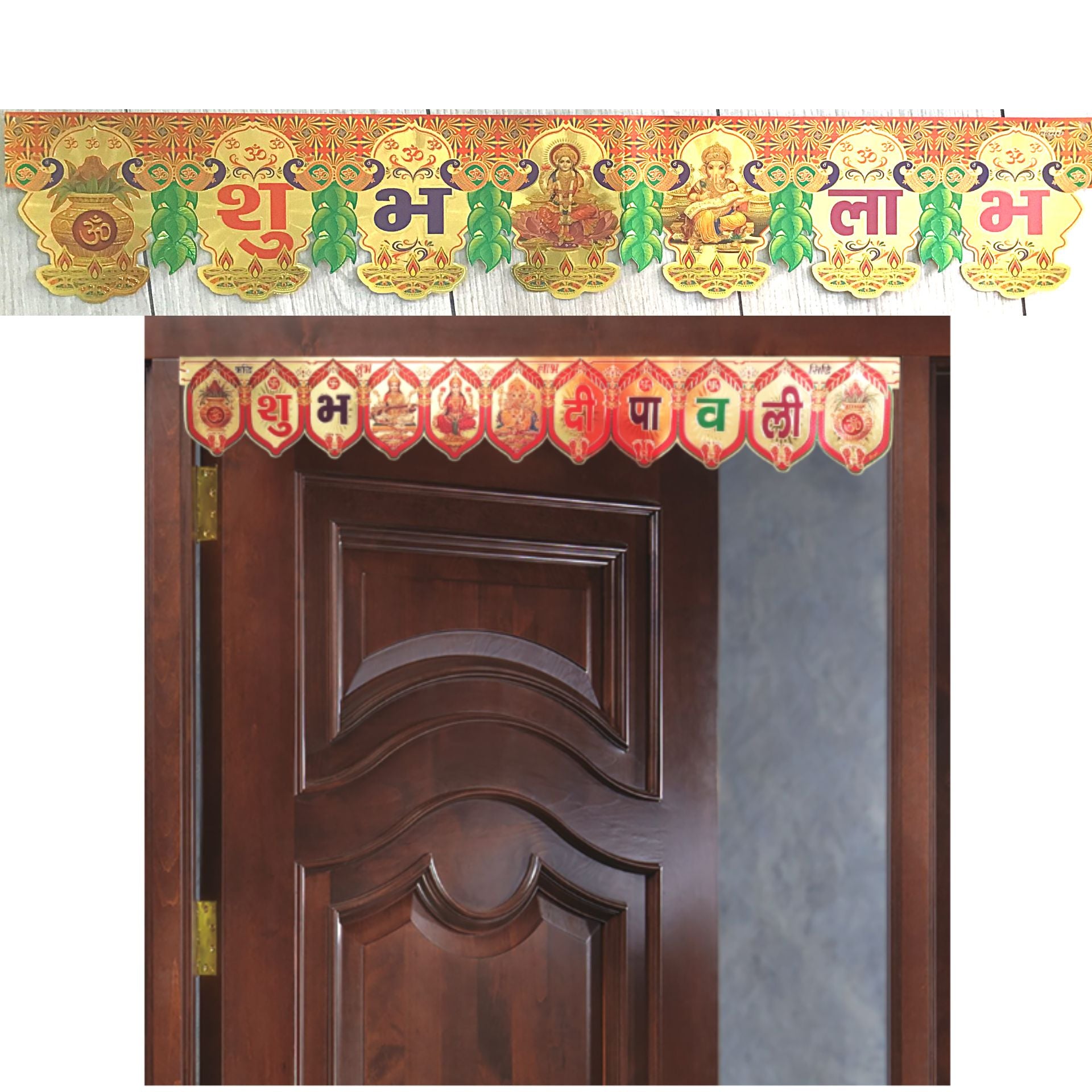लक्ष्मी गणेश कलश के सुनहरे डिजाइन के साथ पारंपरिक दरवाजे पर लटकने वाला तोरण | स्वर्ण शुभ लाभ लक्ष्मी गणेश कलश डिजाइन पारंपरिक कला हस्तनिर्मित दरवाजा लटकने वाला तोरण
