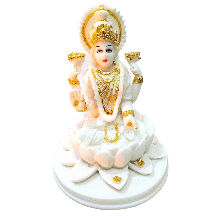 सफेद संगमरमर से बनी भगवान लक्ष्मी की मूर्ति