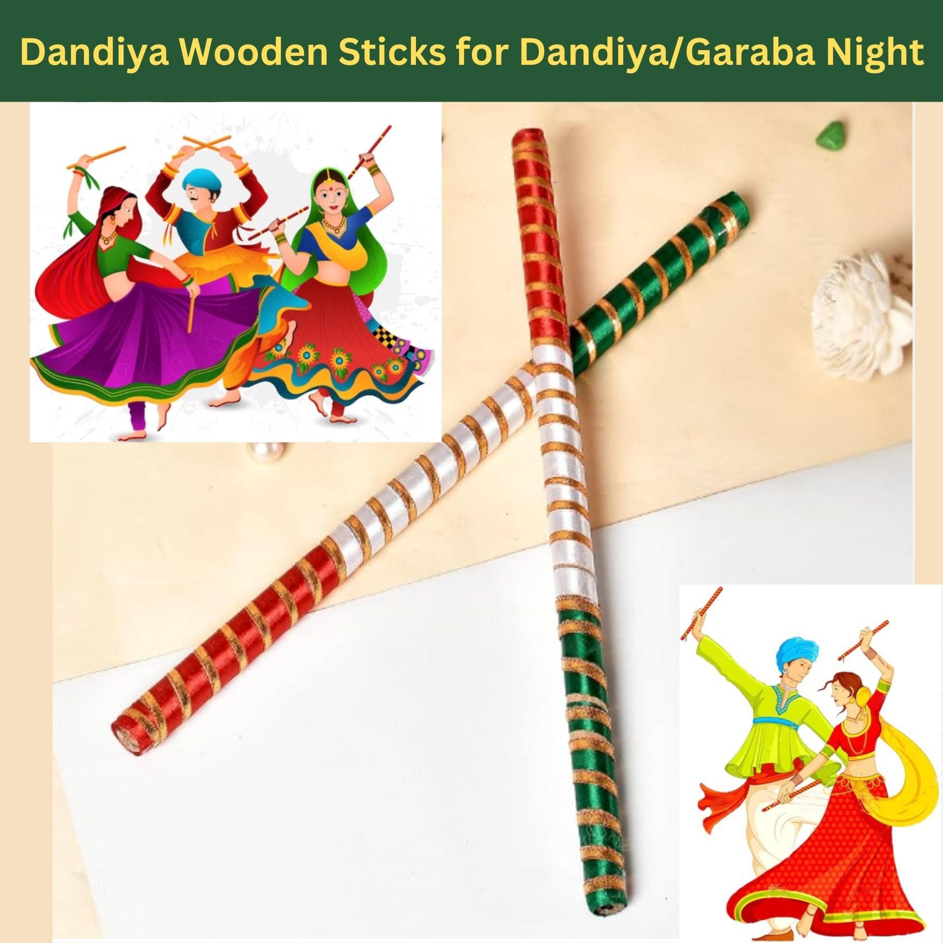 नवरात्रि डांडिया महोत्सव के लिए मल्टीकलर डांस स्टिक सेट | नवरात्रि गरबा नृत्य के लिए डांडिया मल्टीकलर स्टिक सेट (लकड़ी) 14 इंच