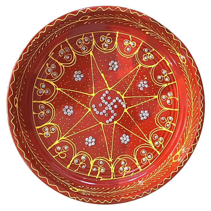 पूजा के लिए सजावटी थाली | पूजा के लिए लाल रंग की सजावटी थाली (मध्यम)