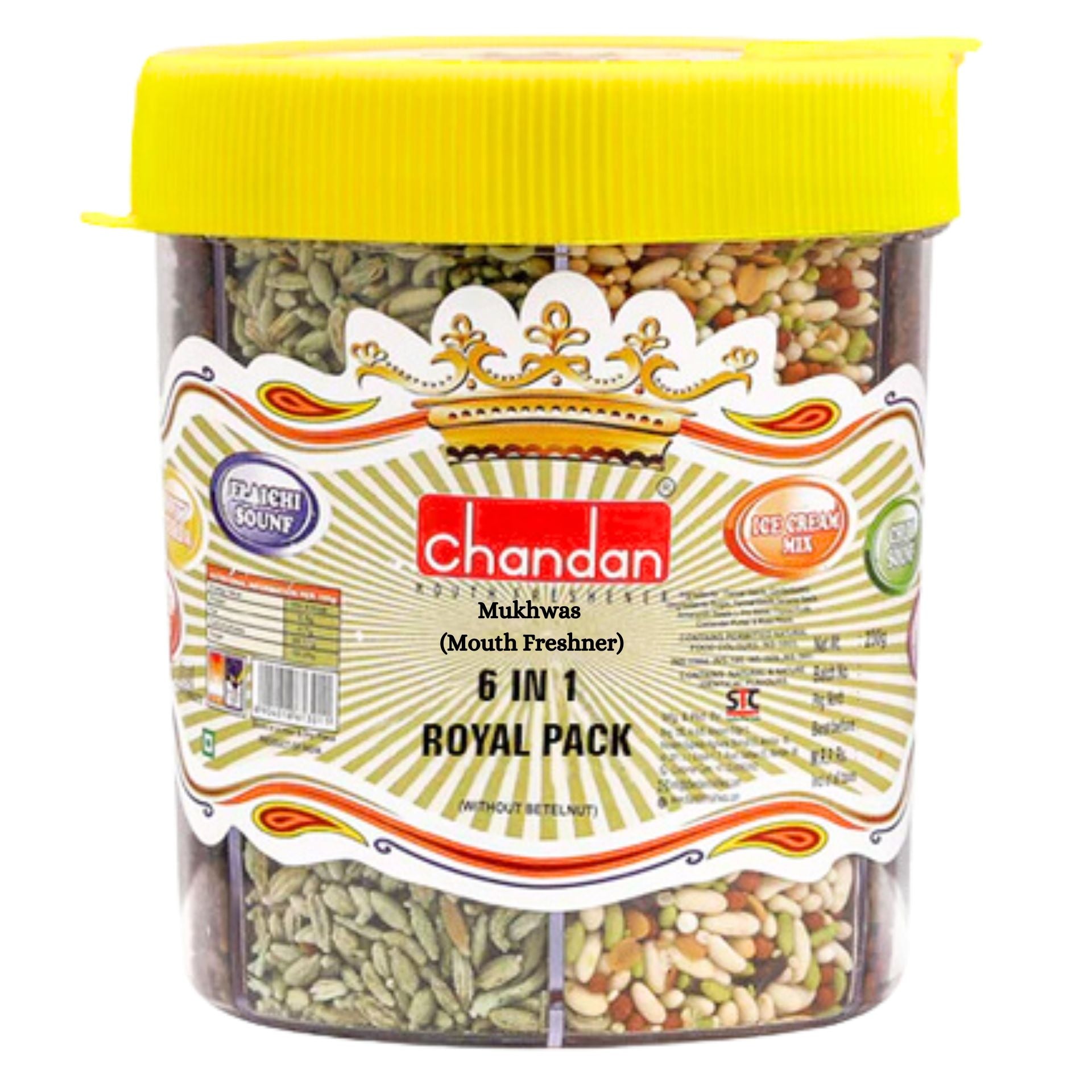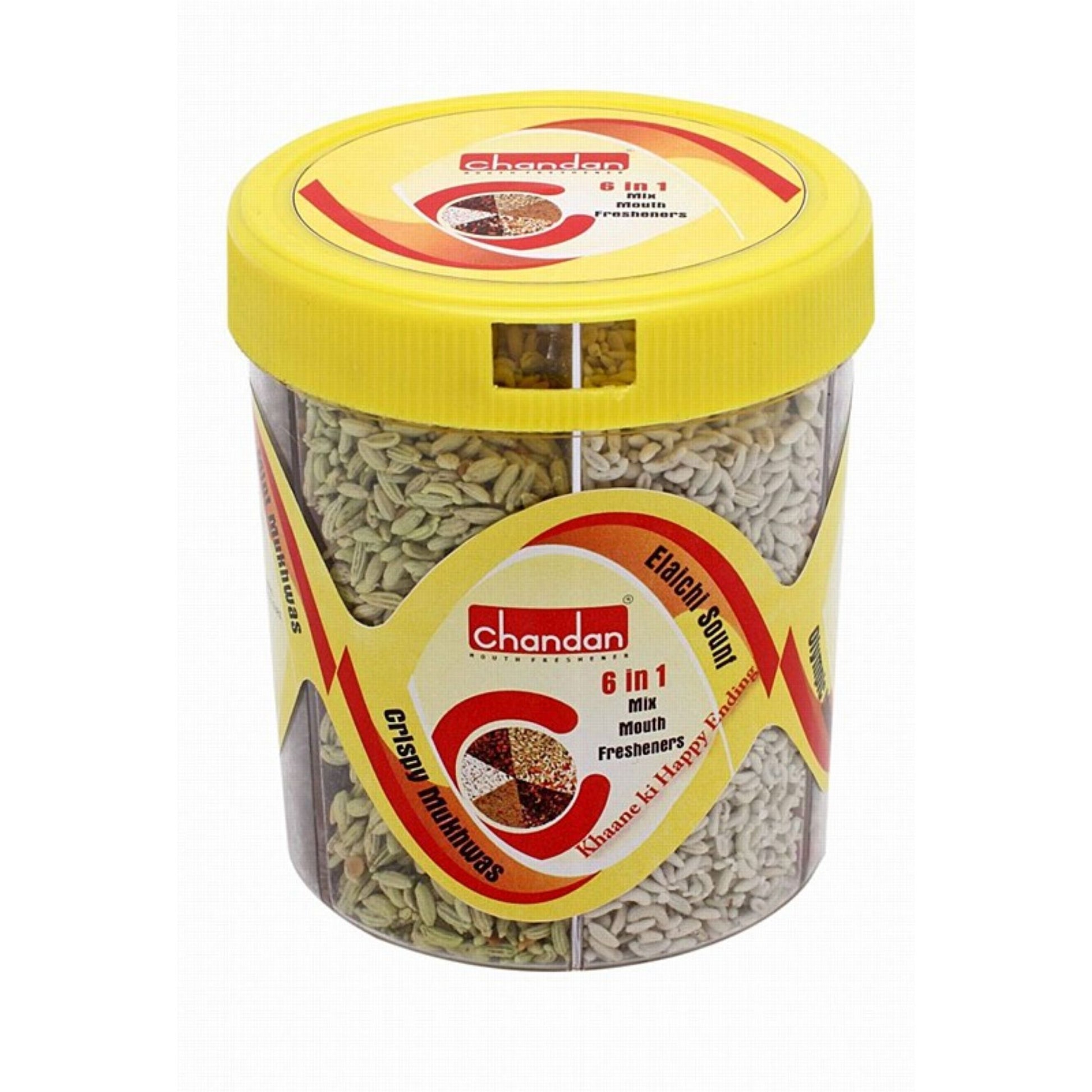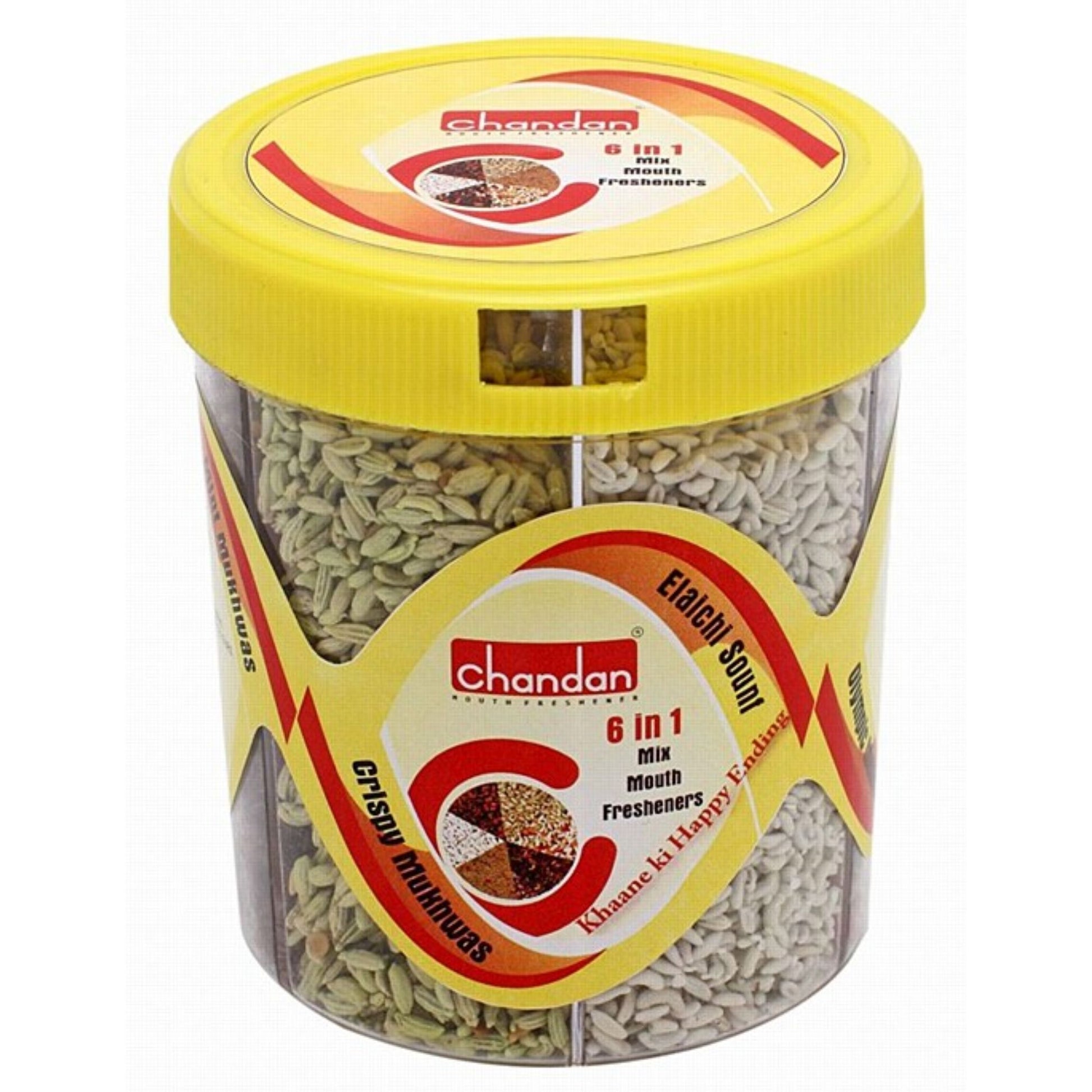 चंदन मुखवास 6 इन 1 मिश्रण छह अलग-अलग माउथ फ्रेशनर्स का संयोजन है।
