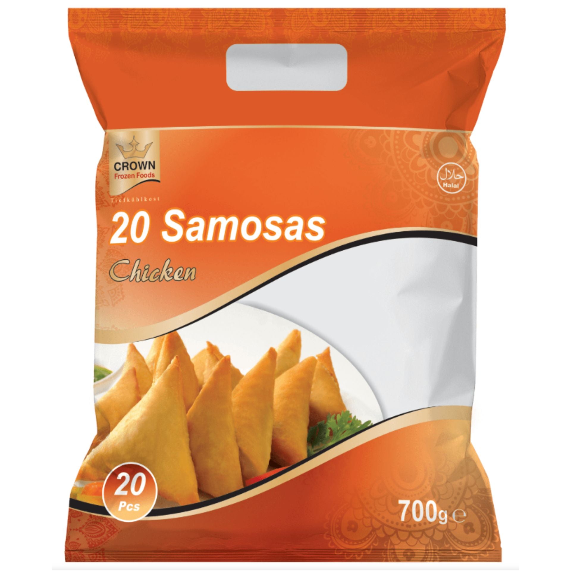रेडी-टू-ईट चिकन समोसा | चिकन समोसा 700 ग्राम/20 पीस. क्राउन